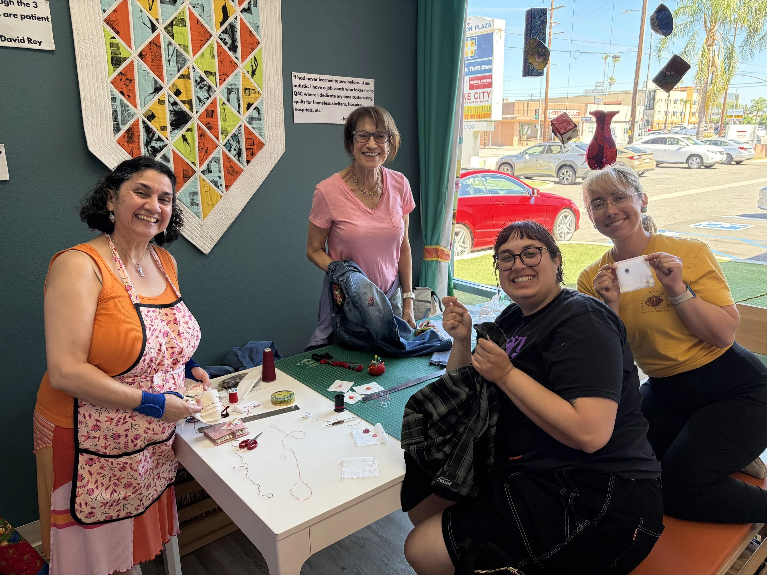 Our mission is to build community by teaching free & low-cost quilting and fiber arts classes in a creative, inclusive, and multicultural space.