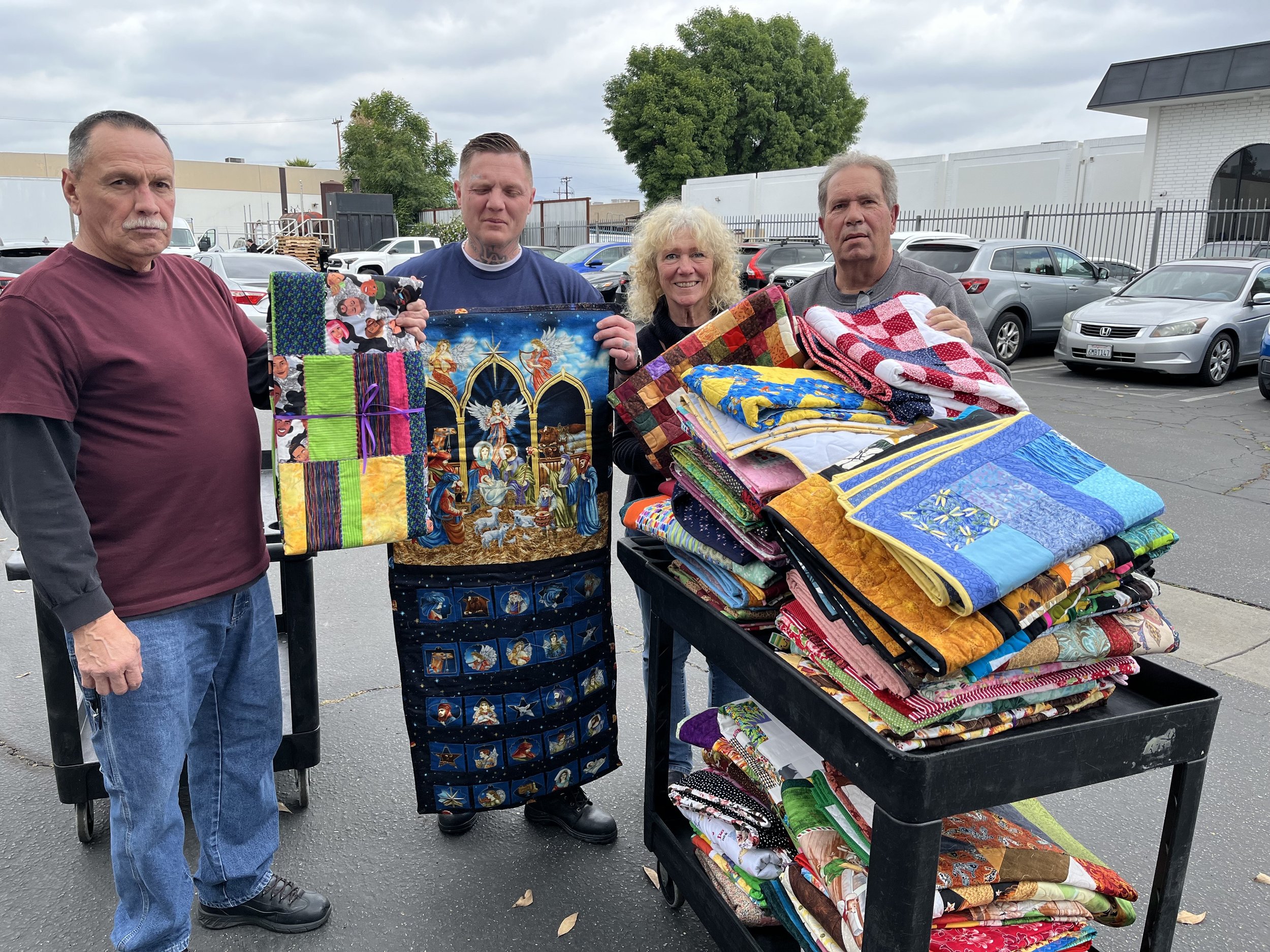We deliver handmade quilts to folk in hospice, shelters and hospitals as a symbol of hope and encouragement.